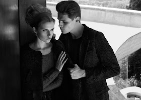Photographer René Habermacher portrays a turbulent relationship in the August 2010 issue of L'Officiel Paris with the editorial Tension starring Adrian Wlodarski and Cato van Ee. Stylist Akari Endo-Gaut and hair artist Karin Bigler add a 60s touch to the moody editorial.