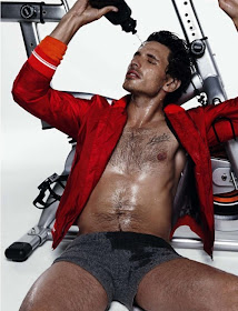 Borrowing its name from his girlfriend’s hit song, the sportswear editorial “Can’t Get You Out of My Head” stars Spanish model Andres Velencoso Segura with photography by Milan Vukmirovic and hair by Massimo Gamba. The editorial appeared in the recent 20th issue of L’Officiel Hommes. Continue for more (NSFW) images after the jump.