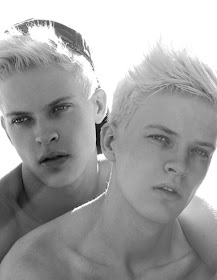 Wiener twin models Jochen Peroutka & Jörg Peroutka by Philipp Jelenska for the latest Blonde issue of Guapo.