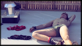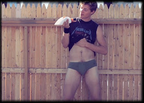 Asher Caplan sure loves his pizza slice. Videotographer Marco Castro captured the model getting quite excited about his slice while hanging out on the rooftop in green briefs and a Metallica t-shirt that just can't stay on. Note: racy content.